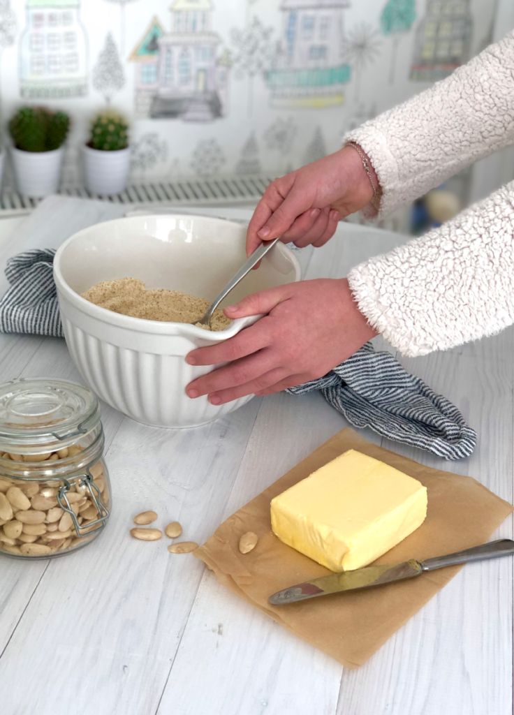 100 gr. de harina de almendra (Yo la triture y puse almendra blanca sin piel)