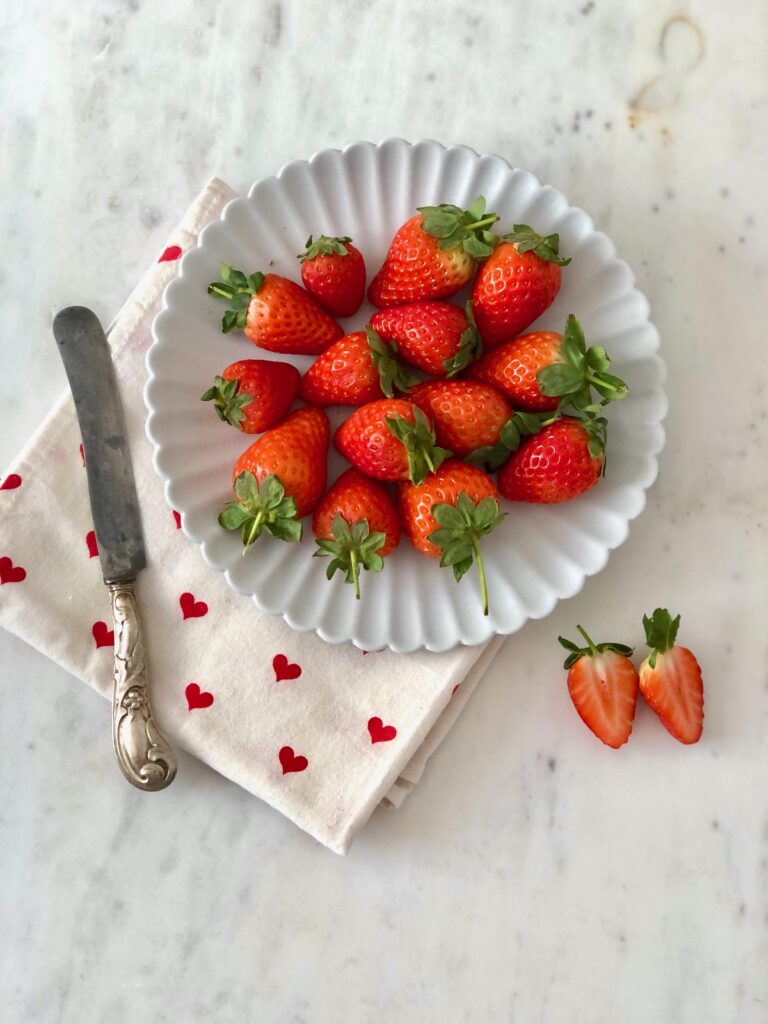Me encantan las fresas de temporada, en casa las comemos solas, con zumo de naranja, hacemos mermelada, macedonia, batidos…..