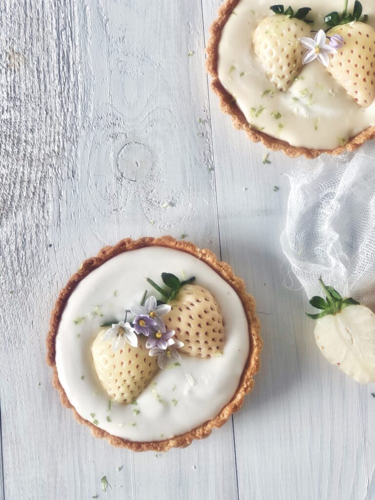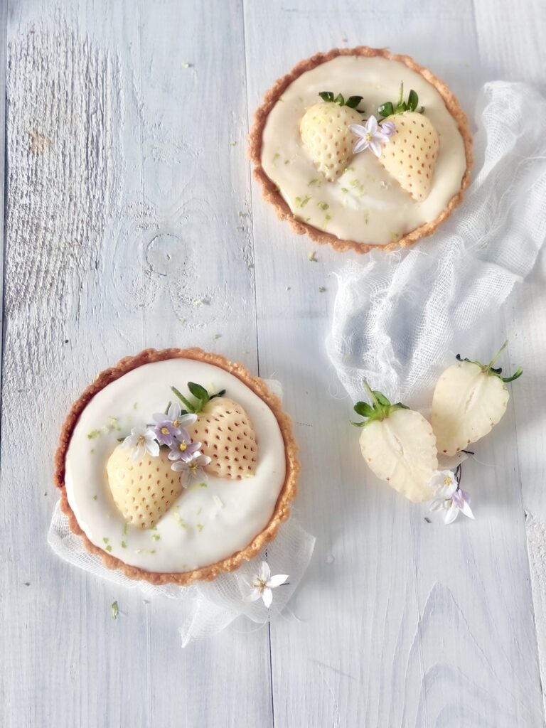 Pues después de tanto moco, dolor de cabeza, fiebre…..jejee lo que más me apetecía era algo dulce y cuando vi esta maravilla de fresas que nunca había probado, la verdad es que saben igual, quizá un pelin más dulces, pero solo cambia el color básicamente, pues pensé en preparar esta maravilla de tartaletas que están para chuparse los dedos.